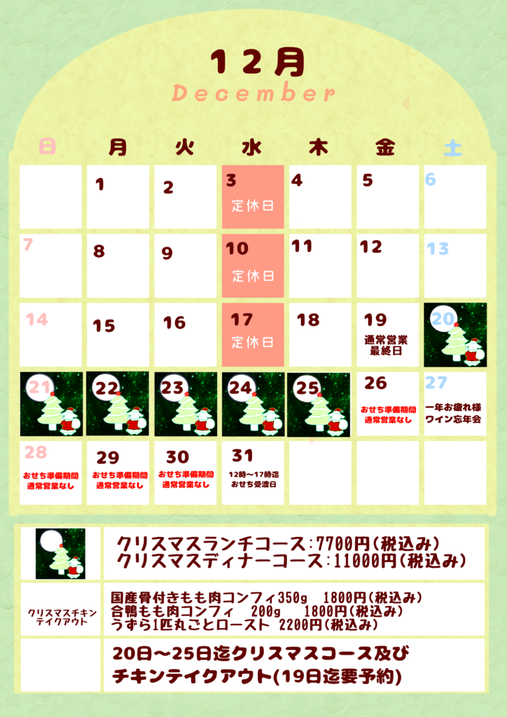 12月の営業は?